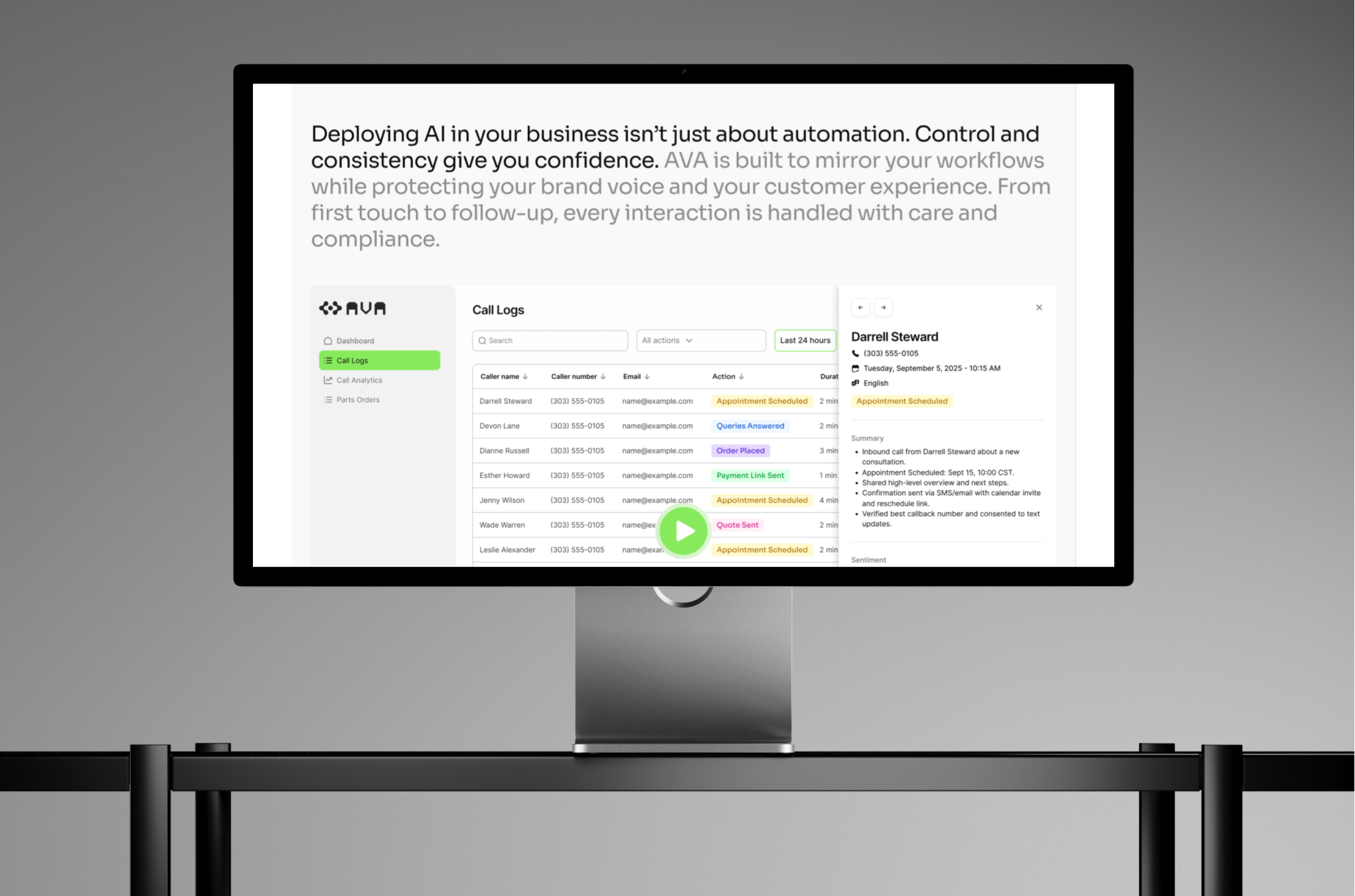 AVA builds intelligent voice agents that understand context, emotion, and intent - designed to make business conversations feel effortless. From automotive dealerships to healthcare networks, AVA automates inbound and outbound calls, freeing teams from repetitive tasks while maintaining the warmth of a real human interaction.