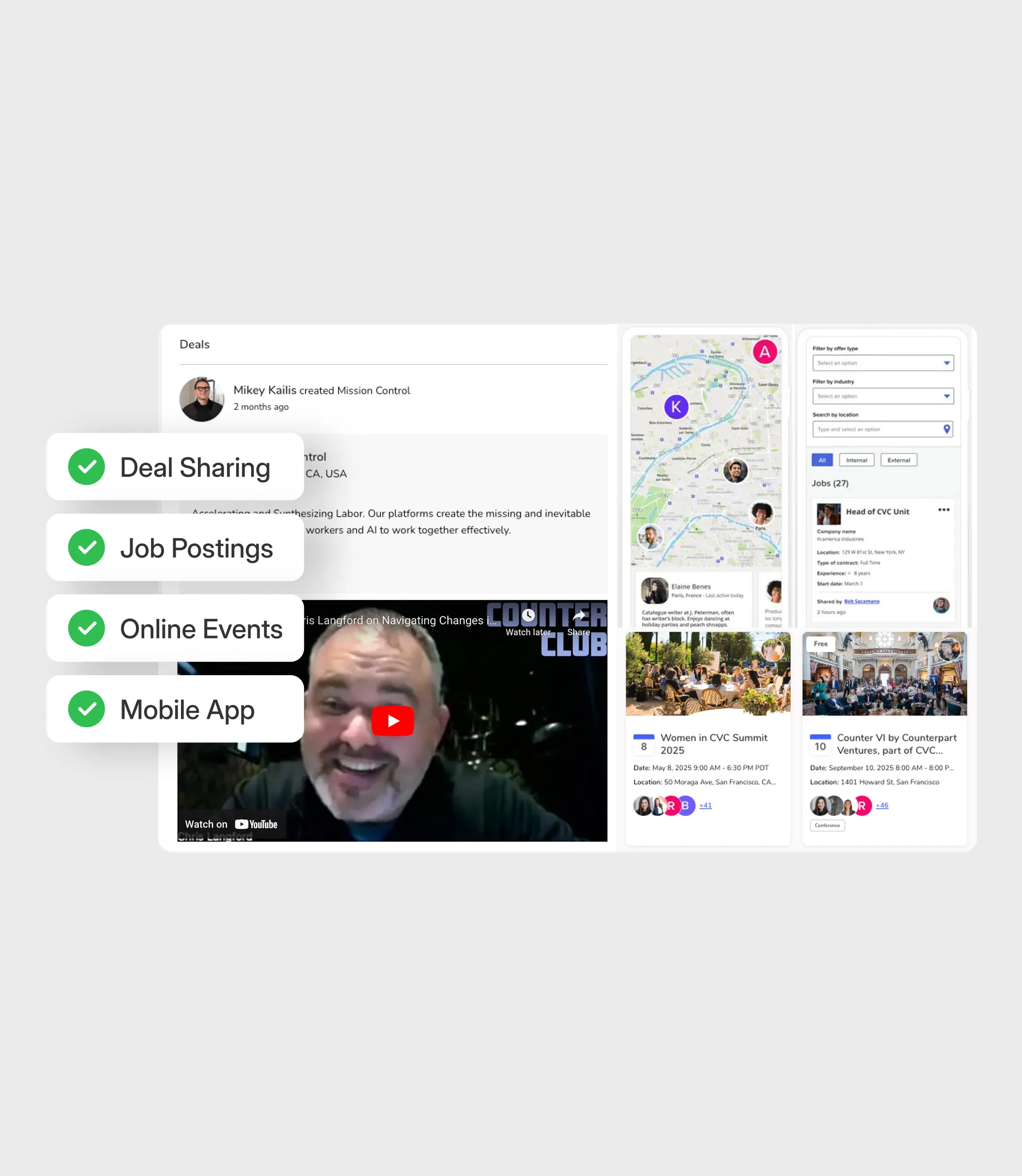 Counterpart’s platform gives founders access to a community built for enterprise builders. Deal sharing, job postings, curated events, and a mobile app help teams connect with operators, customers, and talent. The redesigned system brings all of these touchpoints together in one place, making it easier for founders to learn, hire, share opportunities, and stay connected to the Counterpart network.