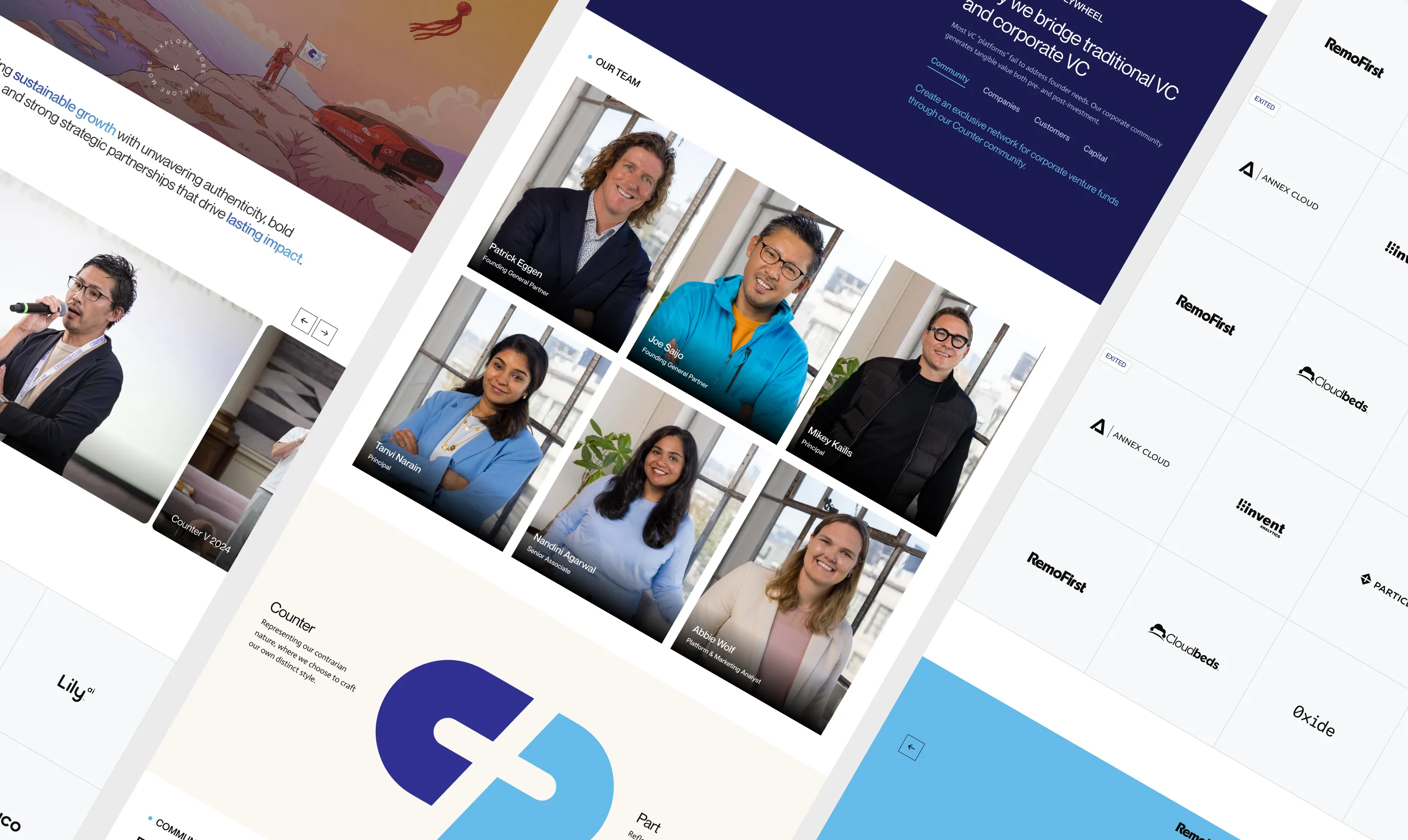Counterpart’s approach is built around a four-part flywheel: Community, Companies, Customers, and Capital. Each reinforces the other. Community drives deal flow and mentorship. Companies bring innovation and talent. Customers unlock distribution and validation. Capital fuels long-term growth. The digital experience visualizes this model clearly, helping founders understand how the firm supports them across every phase of building.