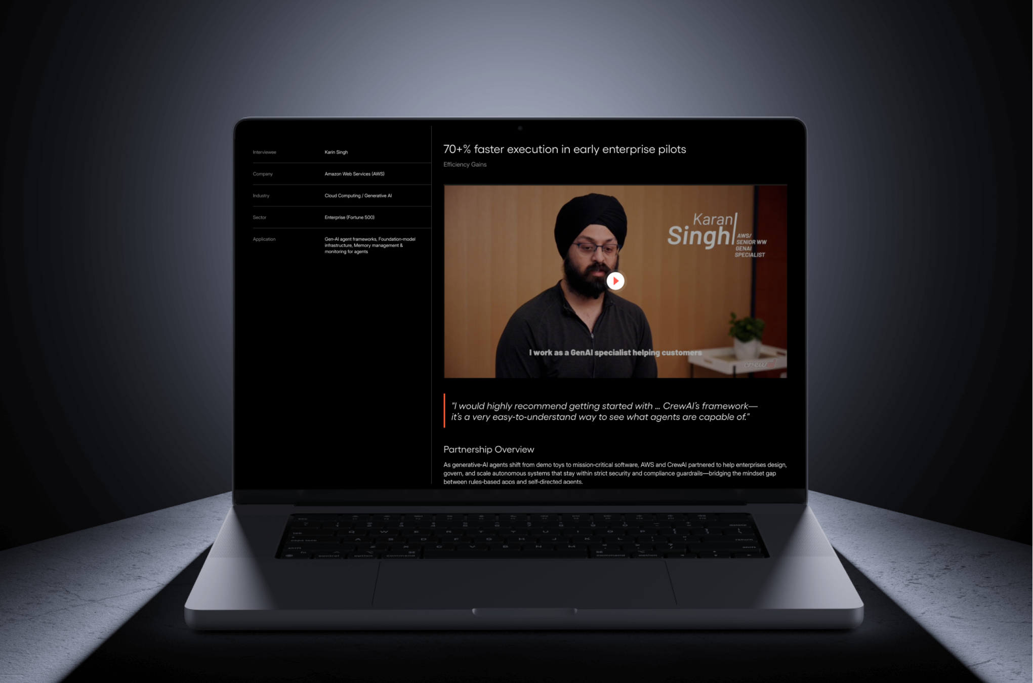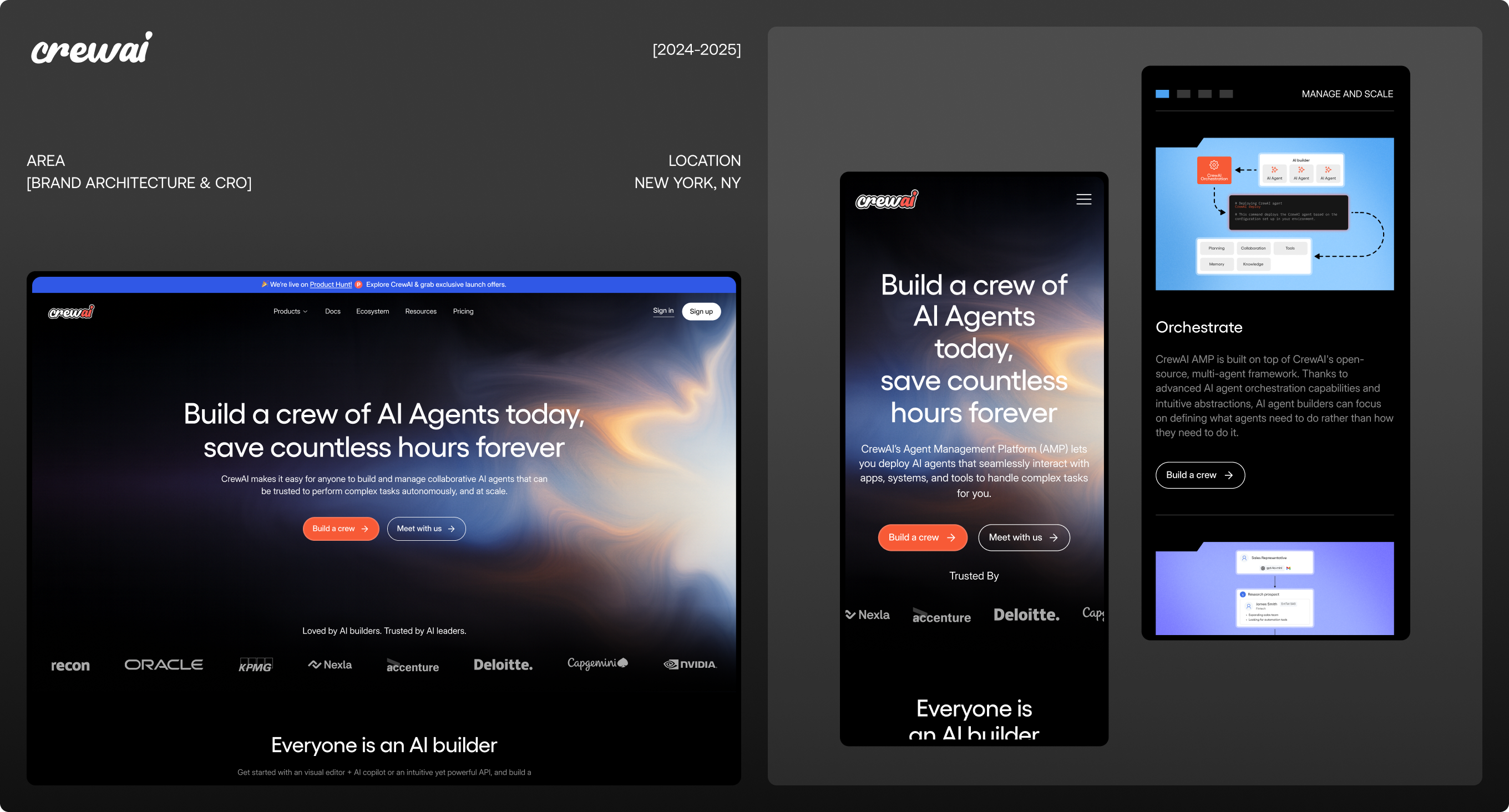 - Tailored Design: Modern, intuitive layouts that highlight CrewAI’s platform and make it easy to understand what it does and why it matters.