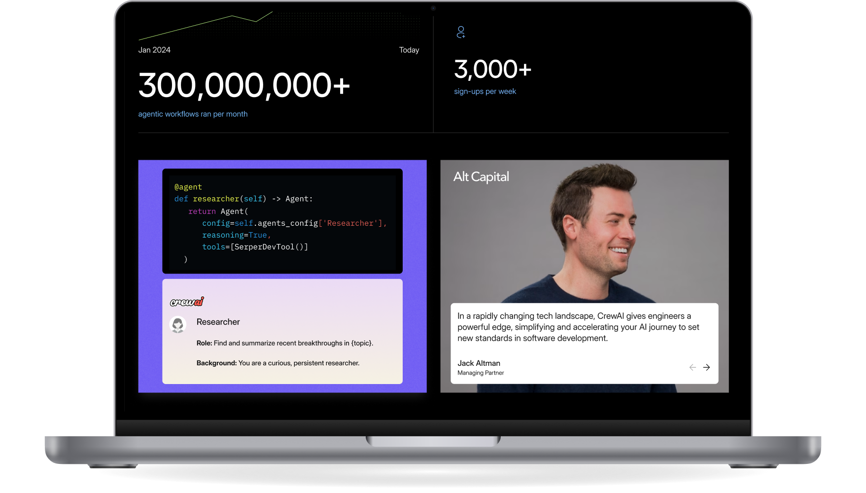CrewAI is a multi-agent framework for orchestrating autonomous AI agents into “crews” that tackle complex workflows together. Its modular design and flexible integrations let teams build scalable, production-ready automations across industries.